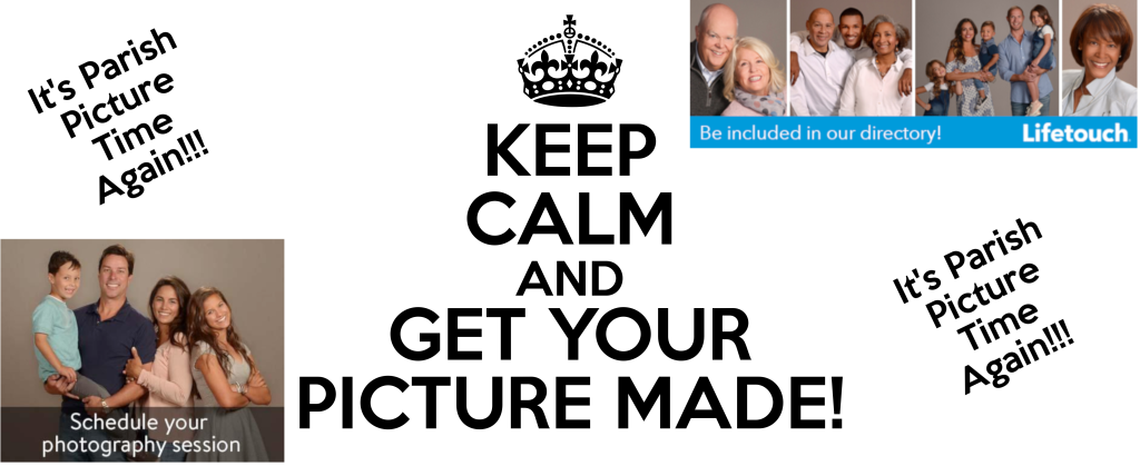 “It’s time! It’s time for us to update our photo directory. I know you are all busy. For now, we just need you to save the date. Lifetouch will be photographing all families starting: 04/23/2019 to 05/18/2019 in our parish hall. Pets are allowed and if you bring a can item for our Center of Concern you will receive a $5.00 off coupon. You will also receive a free 8X10 and a parish directory.